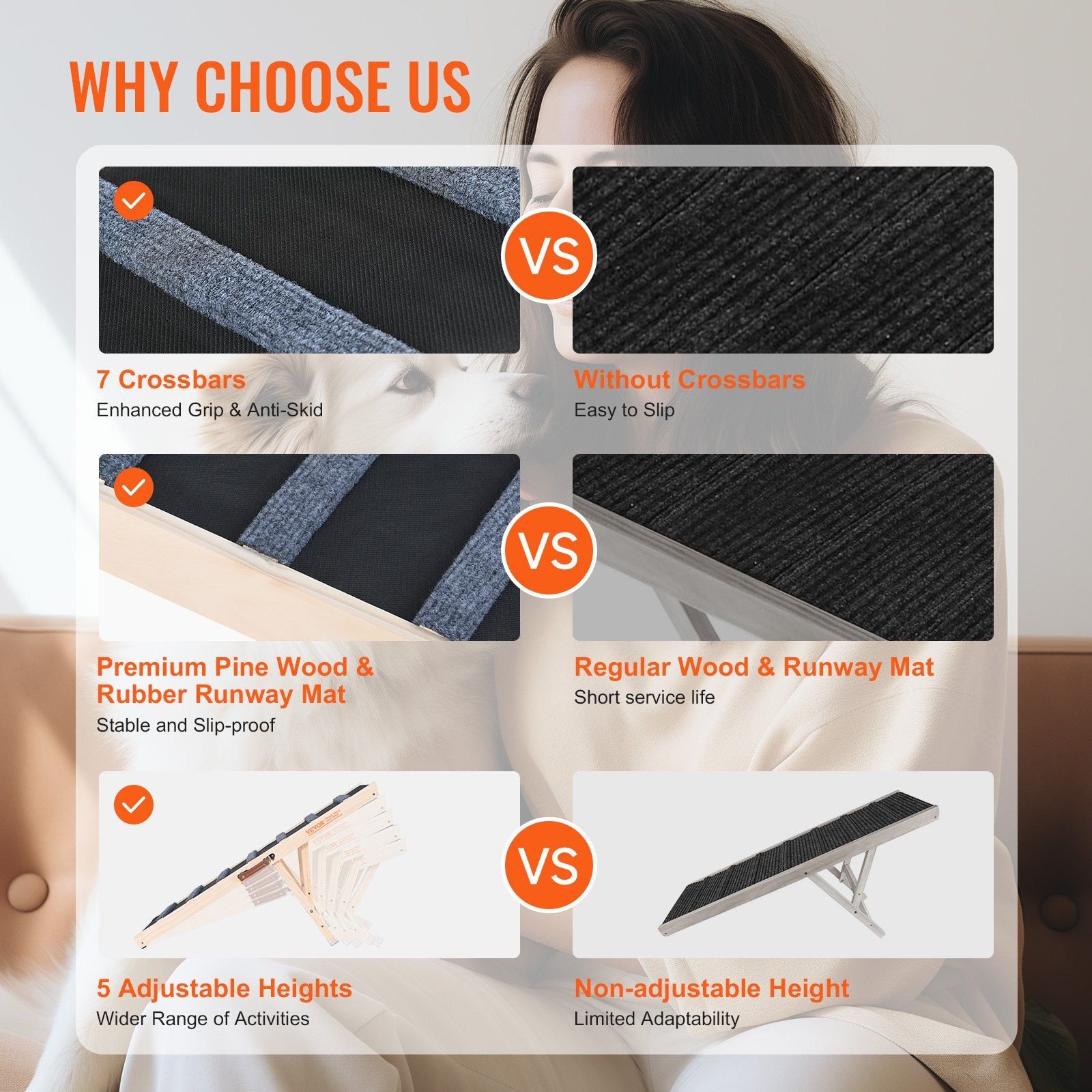 Home > VEVOR Dog Ramp, Folding Pet Ramp for Bed, Adjustable Dog Ramp for Small, Large, Old Dogs & Cats, Wooden Pet Ramp with 39.3" Long Ramp